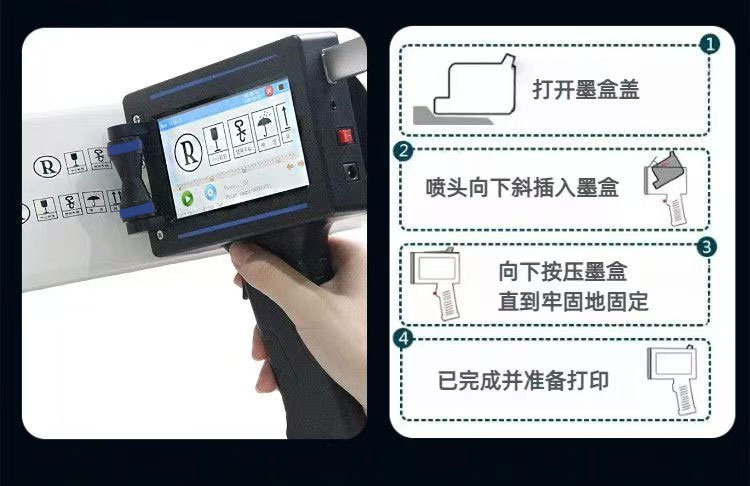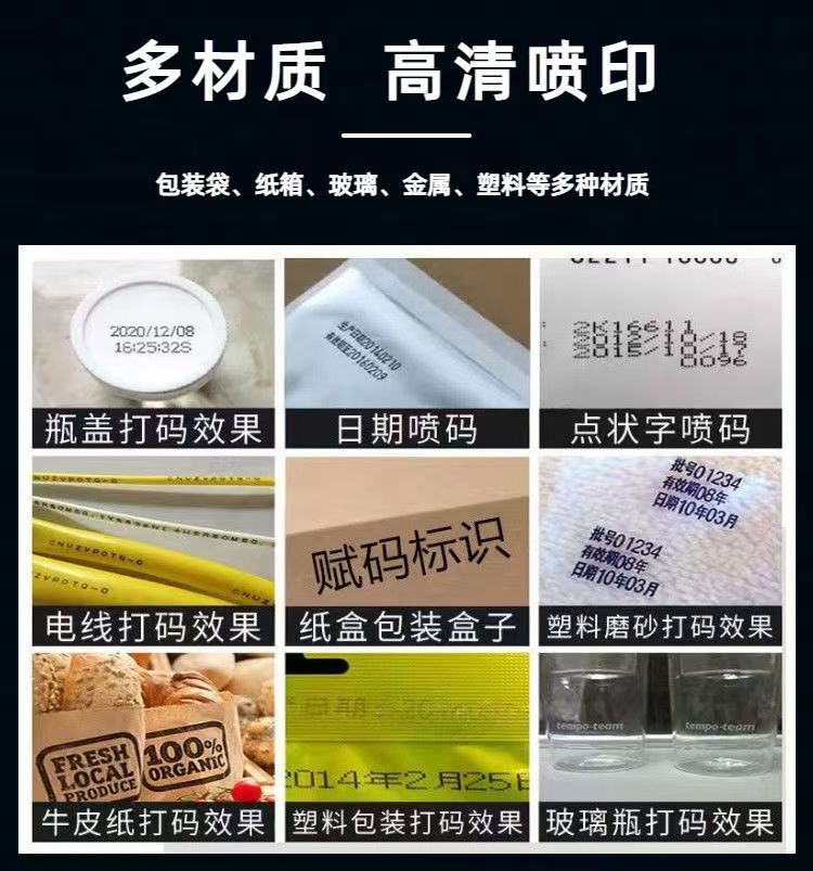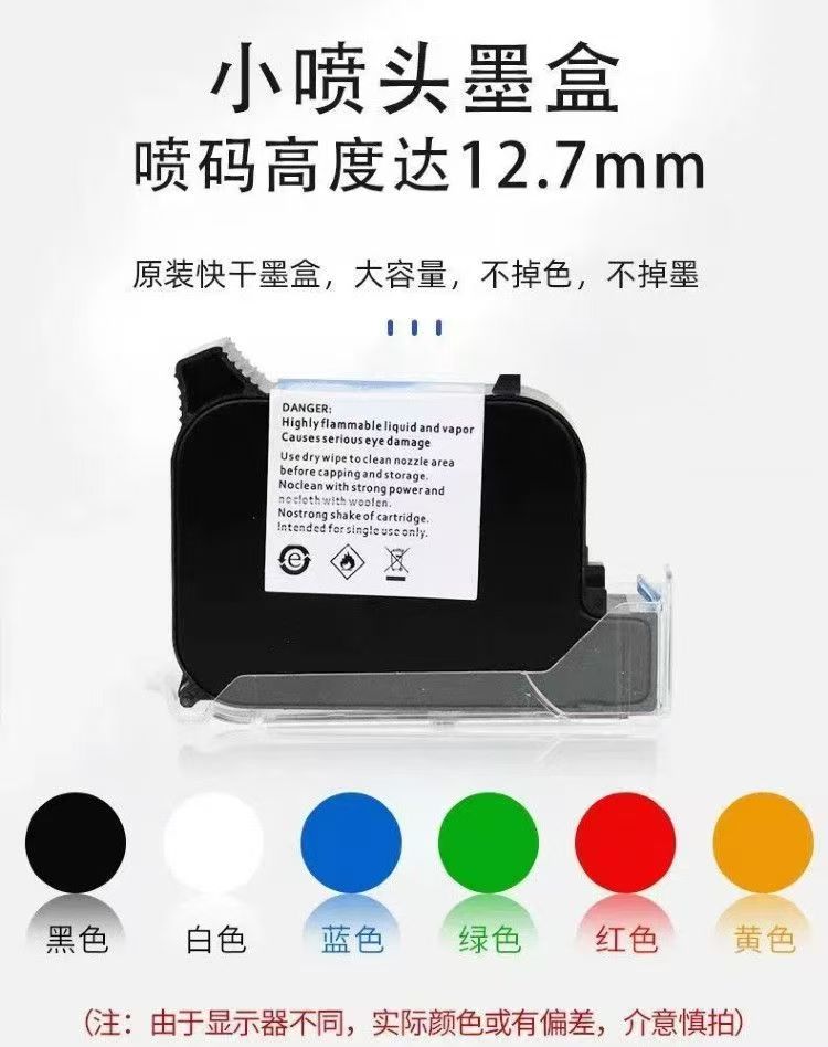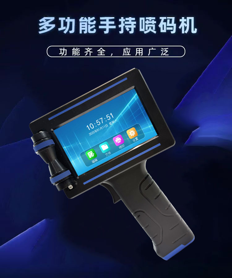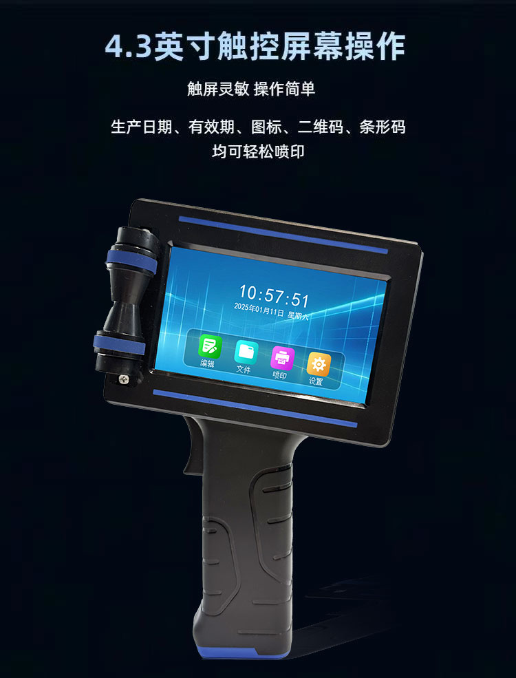 功能丰富,具备一键缩放/全屏显示,方便内容编辑调整;无线扫码+蓝牙传输,可快速关联信息;支持多国语言及中英文字手写输入,4.3寸屏还能定制开机页 ;能实现可变数据喷印,满足防伪、追溯等需求,墨水可重度加黑,适配智能喷码场景,也支持多种墨盒类型 ,助力企业高效完成生产标识工作,广泛应用于各行业产品喷码环节 。