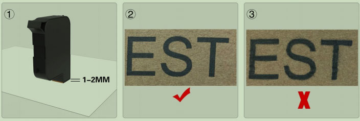 ②确保墨盒喷头与喷印物品表面距离在正确范围内可获得更好的印质量。