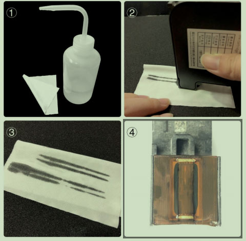 ④下次使用前,需擦拭、清洗墨盒喷嘴。